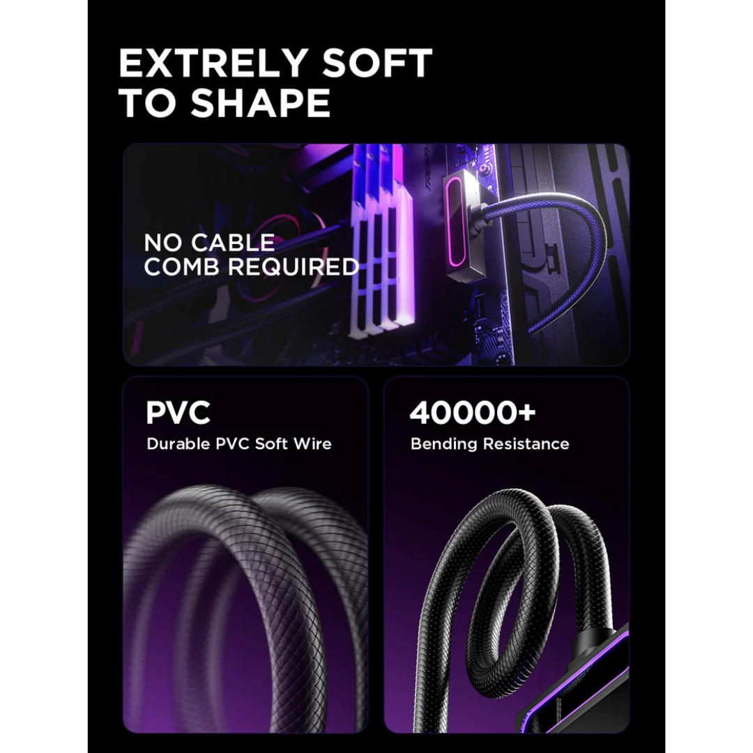 Integrated Minimalist Design: Designed with a seamless style and 90° right-angle connectors. No bending required—ensuring full terminal contact. Plug-and-play setup improves flexibility and keeps cable management clean, making it an ideal choice for PC DIY builds.