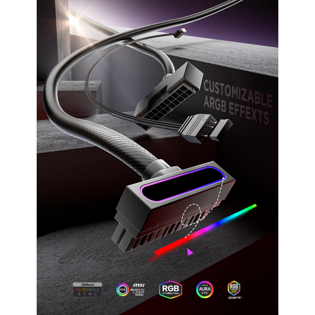 Asiahorse Hydrus ARGB PSU Extension Cable 24PIN 30CM Motherboard (Black/White)