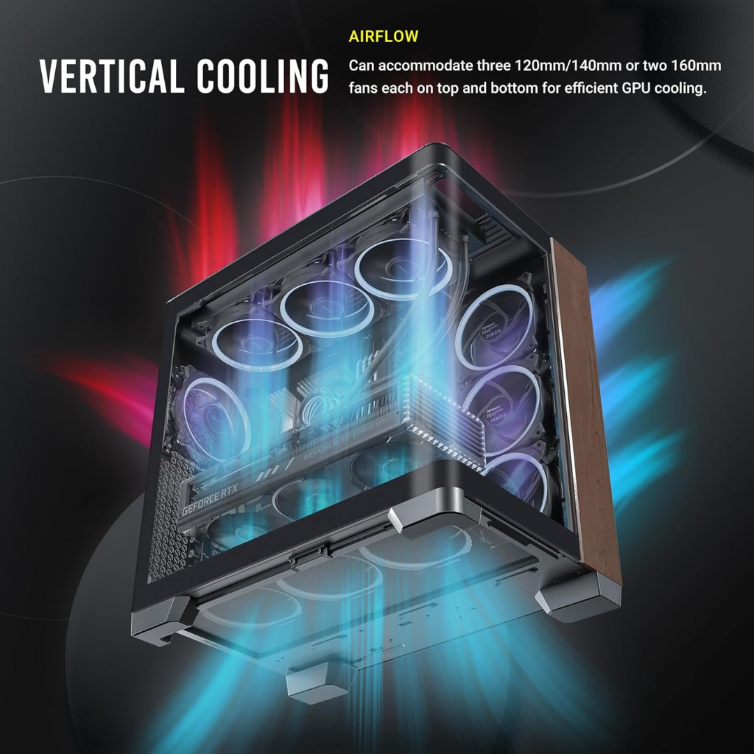 - Space for Three 140mm Fans or Two 160mm Fans on Top and Bottom. Supports Thick 360mm Radiators on Top, Bottom, and Side Simultaneously.