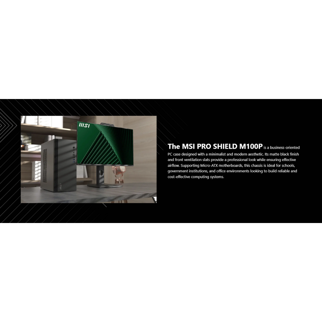 MSI Pro Shield M100P Compact Mid-Tower | Tool-Free Drive Bays | USB 3.2 PC Case