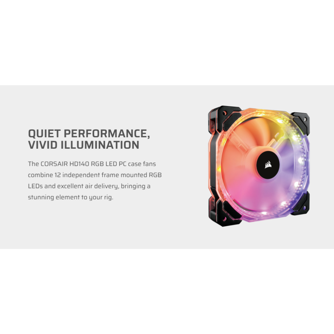 The CORSAIR HD140 RGB LED PC case fans combine 12 independent frame mounted RGB LEDs and excellent air delivery, bringing a stunning element to your rig.