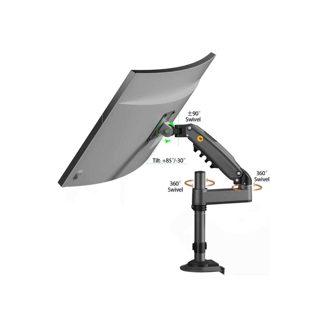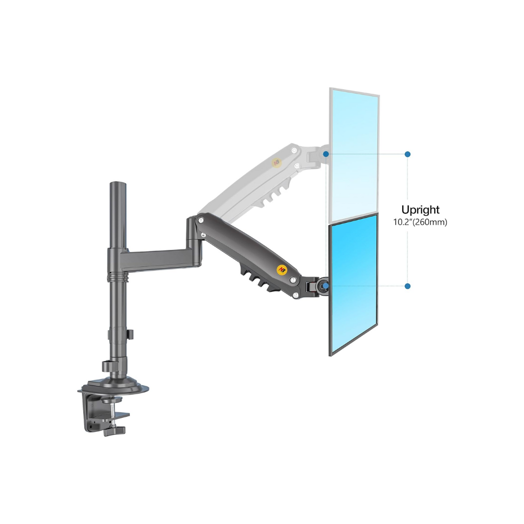 - Customize your working condition, Built-in with ultra-precision gas-strut, Allows +85° to -30° screen tilt adjustment, 360° rotation for landscape or portrait mode; Upright lift 10.2" (260mm) and +90° to -90° degrees swivel, Hold your monitors with an unparalleled range of motion.
