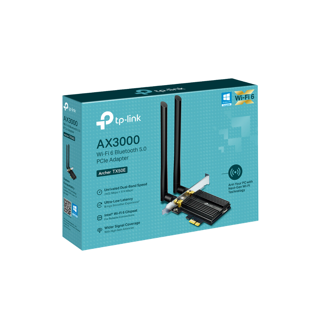 TP-Link Archer TX50E AX3000 Intel WiFi 6 Gigabit Dual Band 2.4GHz 574Mbps + 5GHz 2402Mbps Bluetooth 5.0 PCIe Internet Wireless Receiver Adapter