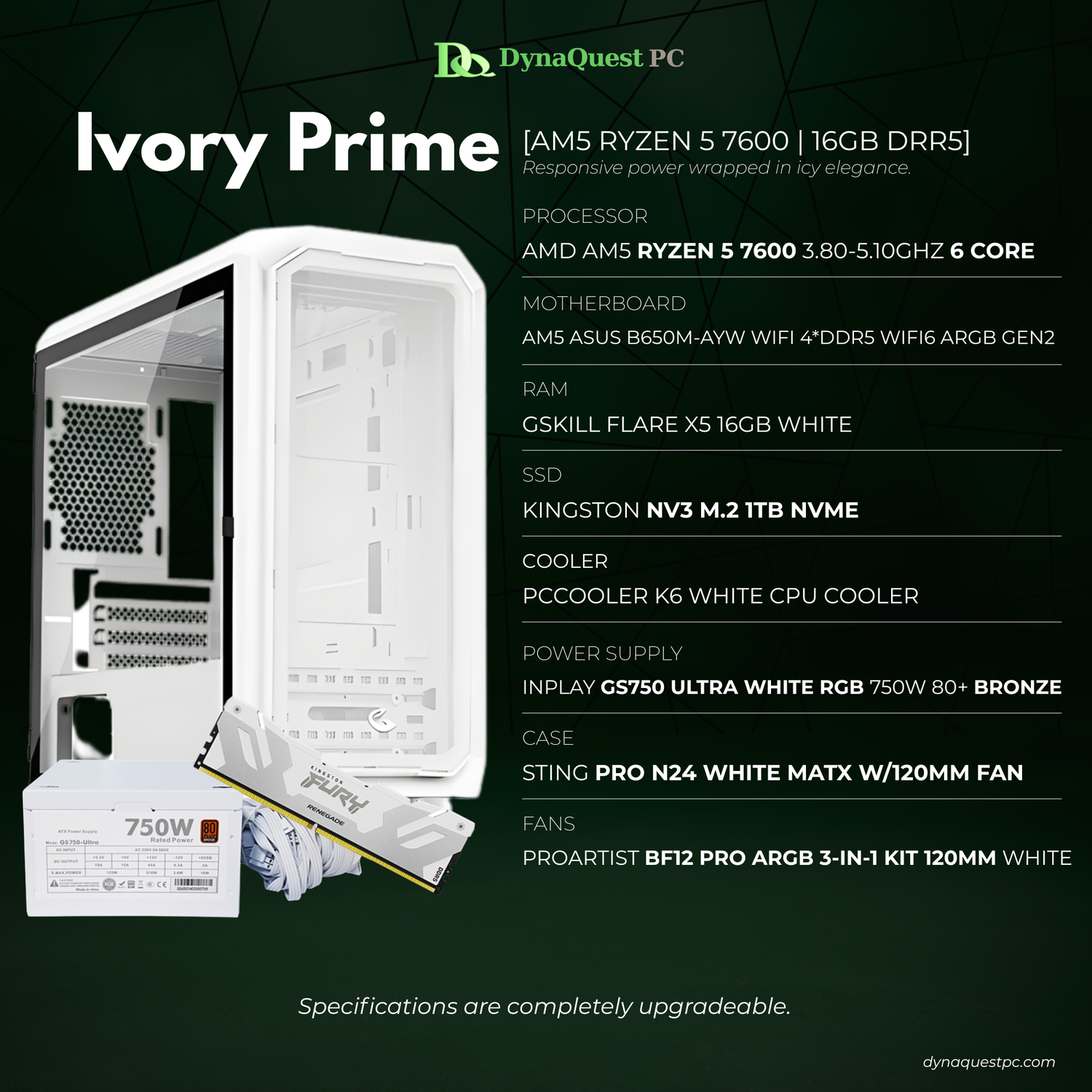 AMD Ryzen 5 7600 6-Core | B650M | 16GB DDR5 RAM | 1TB NVMe SSD | 750W Bronze PSU | Sting Pro mATX Case | 120mm Air Cooler | CPU Package