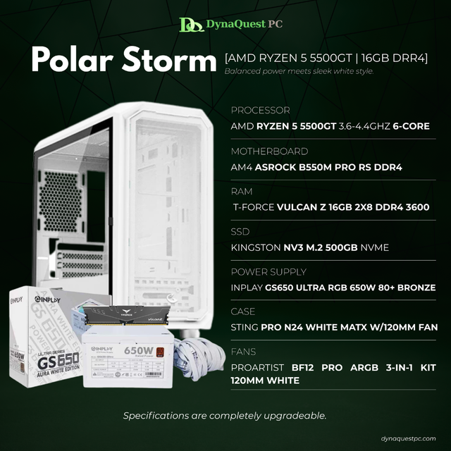 AMD Ryzen 5 5500GT 6-Core | B550M | 16GB DDR4 RAM | 1TB NVMe SSD | 650W Bronze PSU | Sting Pro N24 Case | CPU Package is backordered and will ship as soon as it is back in stock.