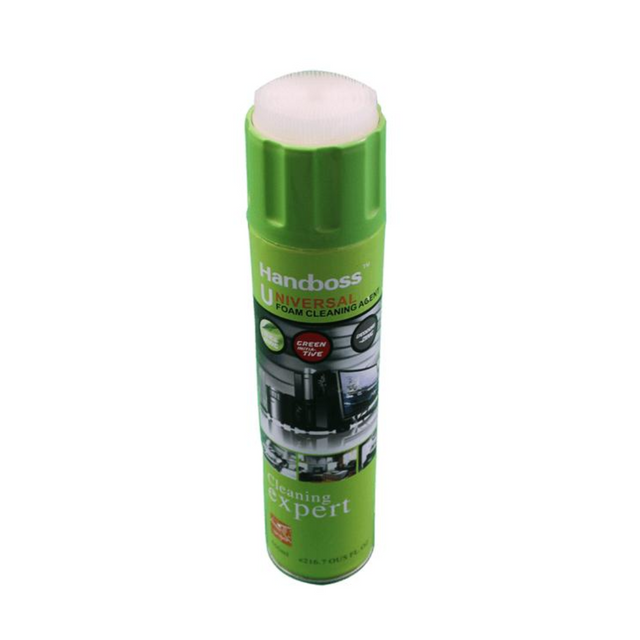 The Handboss Universal Foam Cleaning Agent contains a natural surface active agent with fast penetration and cleaning property for powerful dirt removing performance. This non-toxic, anti-microbial and deodorizing agent can be used on surfaces of machines, metals, plastic, various office equipment including computers, photocopy machines, printers, interior and exterior surface of car and industry machines, furniture, floor and ceramic products.
