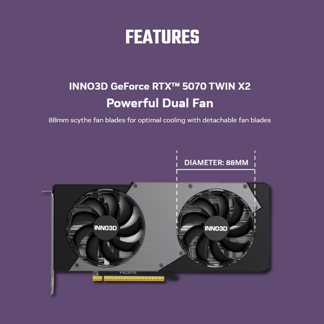 Inno3D RTX 5070 Ti X3 OC 16GB SFF GDDR7 N507T3-16D7-176068N Graphics Card