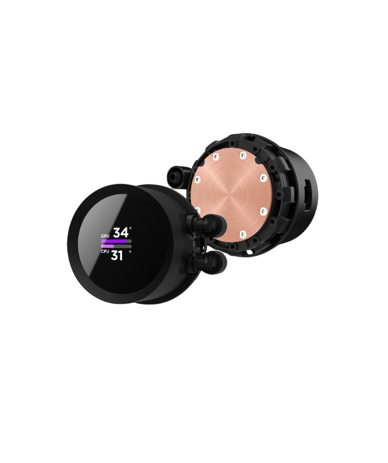 - Pump features an embedded 1.54” square LCD screen to display real-time system info or custom images