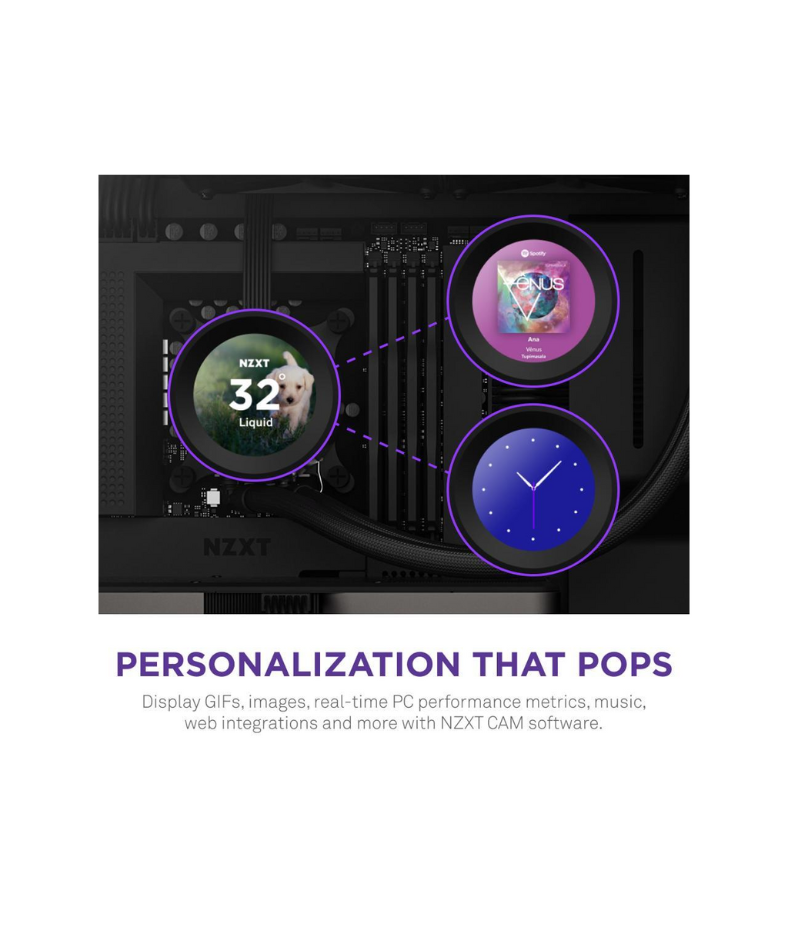 - PERSONALIZATION THAT POPS: Display a favorite animated GIF or static image, monitor real-time PC performance metrics, see music that's currently playing, integrate web content and more with NZXT CAM software.